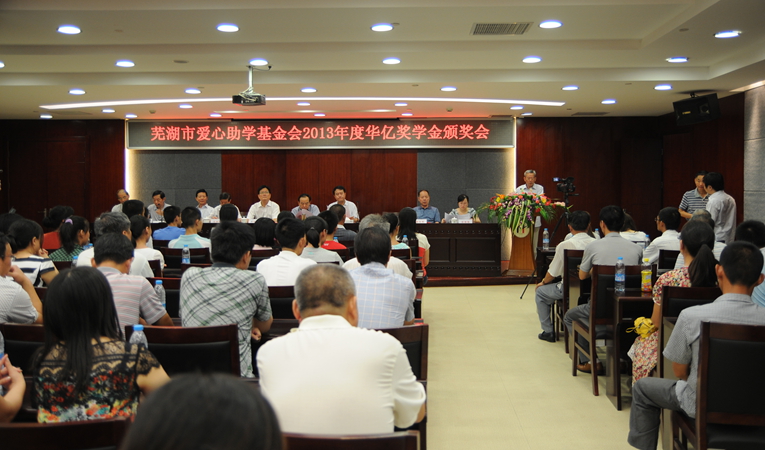 8月8日上午,蕪湖市愛心助學基金會2013年度華億獎學金頒獎會在華億國際報告廳舉行。會上為來自蕪湖市四區四縣成績優異的16名學生頒發了“華億獎學金”。