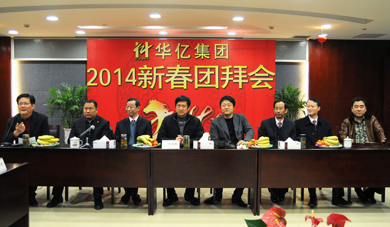 瑞雪兆豐年,華億大團圓!2014年2月9日,農歷大年初十,伴隨著漫天飛舞的雪花,華億集團2014年新春團拜會在華億國際報告廳隆重舉行。團拜會由集團黨委書記、副總裁陳愛國主持,項義水董事長、項領總裁出席,集團及各公司中層以上管理干部全部參加,一些友好單位的代表也應邀參加。