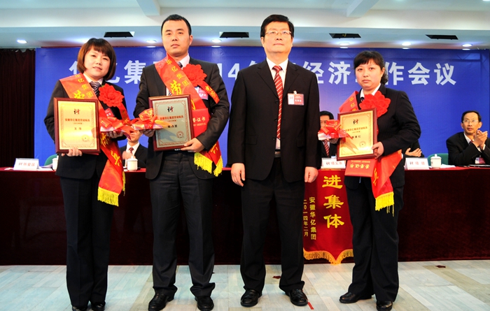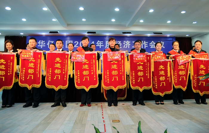 大會在雄壯的《國歌》和《華億之歌》的樂曲聲中開幕。根據大會議程安排,集團副總裁張靖宣讀了2013年度表彰先進的決定,主席臺上的領導分別為獲獎先進個人、先進部門、先進集體、勞動標兵、優秀管理者、華億超市優秀示范店頒獎。獲獎個人和集體代表先后上臺發言。之后,集團總裁項領分別與華億國際、華億置業、偉晨文化、華億城市生活廣場、華億超市五家二級公司,現場簽訂了《2014年經營管理目標責任書》和《安全生產目標責任書》,各公司負責人簽字后分別發言,表示在集團的正確領導下,對完成全年目標任務充滿了信心。