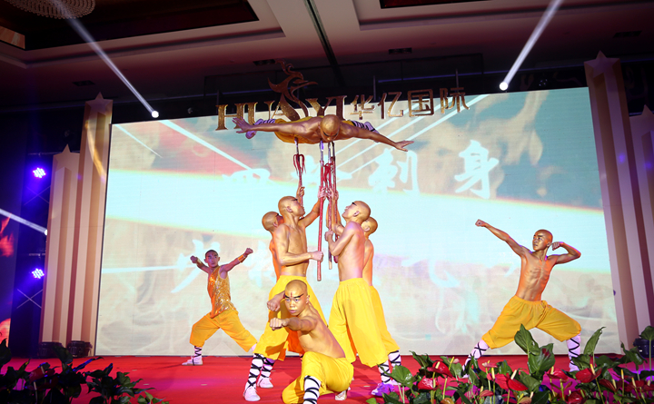 在全場的見證下,華億國際相關(guān)負(fù)責(zé)人分別與百貨類、餐飲特業(yè)類品牌代表,簽訂入駐合作協(xié)議,現(xiàn)場禮花飛揚,臺下的嘉賓紛紛鼓掌慶祝。少林高僧們表演的《十八銅人》,不僅具有濃郁的阜陽地方文化氣息,更是象征著團(tuán)結(jié)合作、共贏未來,呼應(yīng)了招商大會的主題,把大會推向高潮。最后,來賓們舉杯相慶,共同為阜陽華億國際的美好未來祝福。