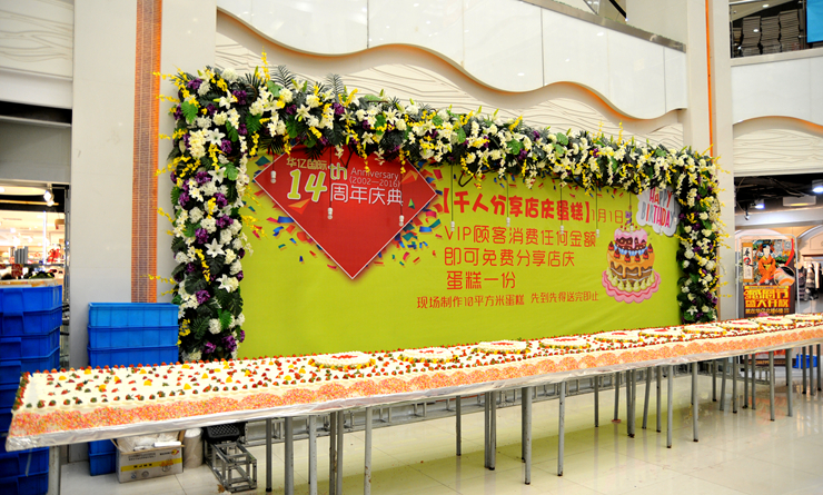 賀辭結(jié)束后,彩球飛天,禮炮齊鳴,一塊標(biāo)有“華億國際十四周歲生日快樂”字樣的大蛋糕被緩緩?fù)七M(jìn)慶典現(xiàn)場(chǎng)。華億國際經(jīng)營班子主要成員共同切開生日蛋糕,與廣大員工和市民分享店慶喜悅。同時(shí),在華億國際購物中心B座三樓中庭,一塊面積10平方米的巨型店慶蛋糕等待顧客朋友共同分享。自此,華億集團(tuán)正式拉開了“四五”發(fā)展的大幕,開啟了一個(gè)全新的時(shí)代。