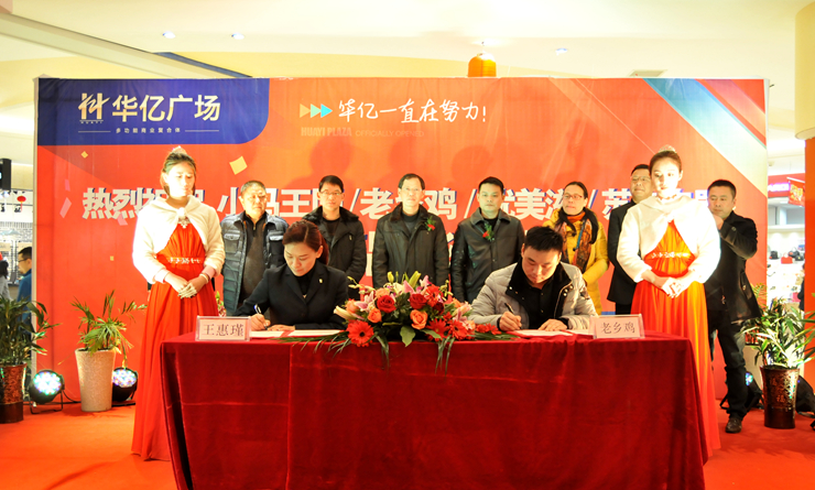 2016年2月5日,繁昌華億廣場品牌入駐簽約儀式在廣場一樓中庭舉行。繁昌縣委常委、組織部長郝代偉、統(tǒng)計局局長姚士群、團縣委書記胡俊、物價局副局長劉兆菊、招商局副局長陳守峰出席簽約儀式,蘇寧云商蕪湖大區(qū)總經(jīng)理左濤、優(yōu)美茲董事長楊文君、老鄉(xiāng)雞開發(fā)部總監(jiān)呂海峰、星光匯KTV董事長謝玉泉,華億集團總裁項領、總裁助理陳雪榮、華億國際總經(jīng)理張樹華、華億置業(yè)公司常務副總經(jīng)理吳學軍、華億國際副總經(jīng)理張玲共同參加簽約儀式。