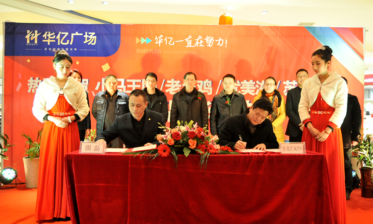 在全場嘉賓的熱烈掌聲中,華億國際總經(jīng)理張樹華、副總經(jīng)理張玲、繁昌華億國際常務副總經(jīng)理王惠瑾、副總經(jīng)理強磊分別與入駐品牌蘇寧云商、優(yōu)美茲、老鄉(xiāng)雞、星光匯KTV進行簽約,標志著這些深受歡迎的品牌正式入駐繁昌華億廣場。