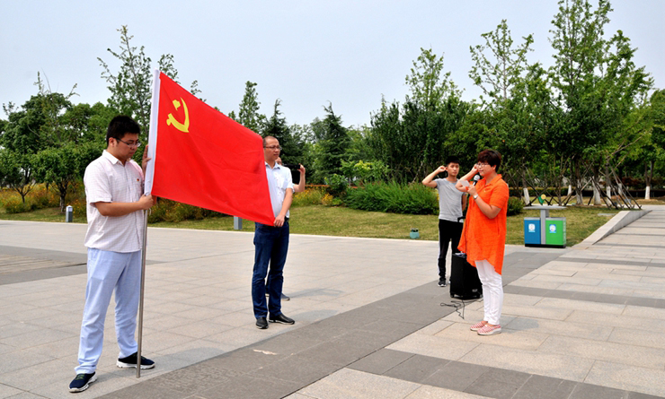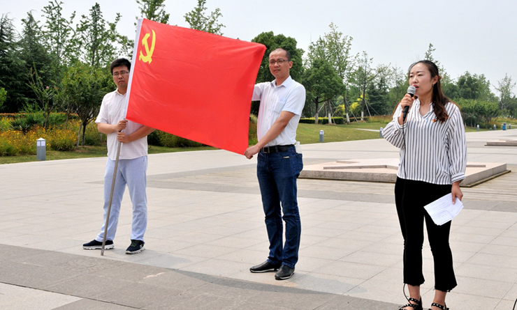 上午10時,全體人員來到合肥渡江戰(zhàn)役紀念館勝利廣場,肅立注目,舉行了簡短的入黨宣誓儀式活動。在雄壯的《國歌》奏響之后,集團黨委副書記孫艷宣讀了鏡湖區(qū)區(qū)委決定及新黨員名單。隨后,新加入中國共產黨的4名黨員和全體黨員面對黨旗,舉起拳頭,進行莊嚴宣誓。宣誓結束后,集團黨委成員為新入黨黨員頒發(fā)黨員證。