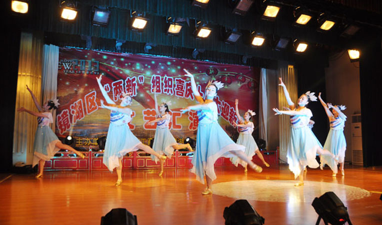 12月27日下午,鏡湖區工商聯、兩新黨工委主辦的兩新組織"喜慶十八大迎新春文藝匯演"在區大禮堂隆重舉辦。鏡湖區四大班子主要領導、區直各部門及區"兩新"組織400余人觀看了演出。其中由華億集團黨委選送、團委組織的舞蹈節目“美麗的心情” 在16支隊伍中獲得二等獎的佳績。華億藝術團的姑娘們演出中精彩的表演和華麗的場景,給觀眾送上了一道美妙的視覺盛宴,也展示了華億人良好的精神風貌。