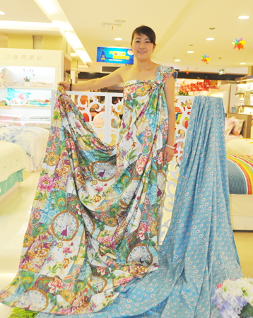 員工們根據春夏秋冬4個主題,將家紡布藝裝飾、點綴在美麗的模特身上,打造“神奇的裹布藝術”系列作品,體現出智慧與美的結合,受到了顧客的廣泛好評。