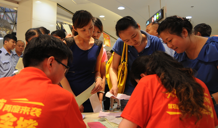 現(xiàn)場所有一線工作人員都換上了大紅色的工作服,上面標(biāo)注著顯眼的“大搶節(jié)”字樣,方便工作人員之間的協(xié)調(diào)工作,更重要的是消費(fèi)者可以隨時隨地找到華億員工咨詢幫忙。特別為這次活動添加的44 臺收銀機(jī),早已擺放到位,調(diào)試完畢,兩座商場98臺收銀機(jī),整機(jī)待發(fā)。華億集團(tuán)其他戰(zhàn)線的近千名員工也輪番趕來支援,幫助維持秩序。70名專業(yè)安保人員分布在華億國際南北兩樓,巡邏查看和發(fā)放獎品等地重點蹲點結(jié)合,確保消費(fèi)者“搶”的放心、舒心、省心。