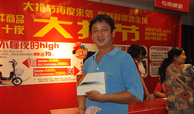 凌晨12點12分,久等了的顧客們,終于領(lǐng)到了心儀的IPADmini、電動車。