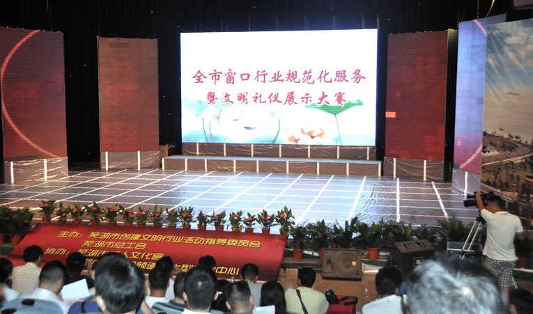 日前,蕪湖“全市窗口行業(yè)規(guī)范化服務暨文明禮儀展示大賽”在蕪湖廣播電視臺演播大廳舉行,由市商務系統(tǒng)選送,華億國際購物中心職工表演的情景劇“品質(zhì)服務,從心開始”獲得優(yōu)秀獎。