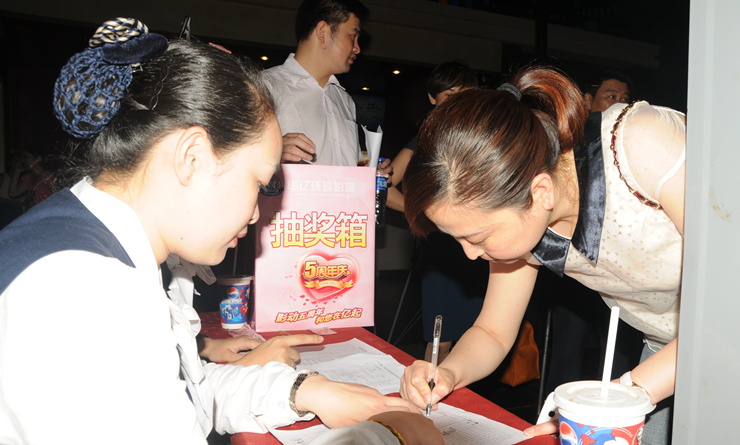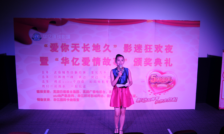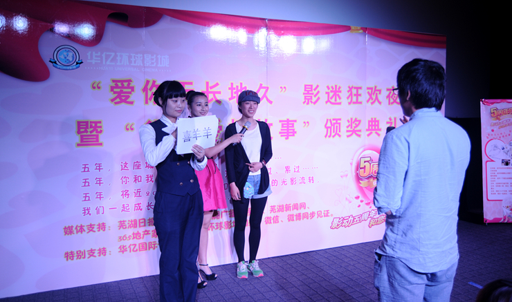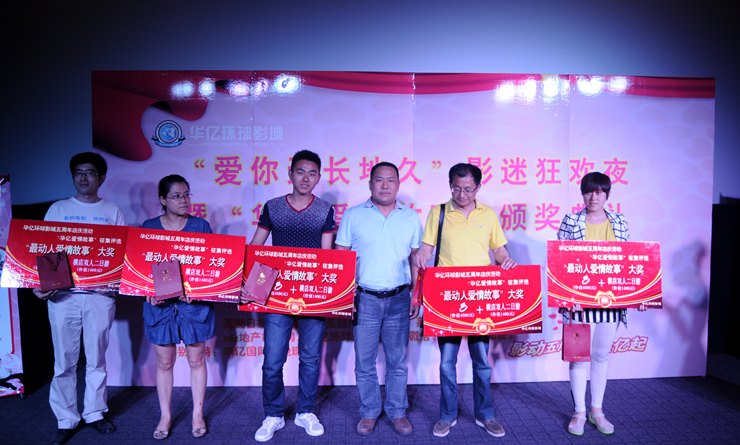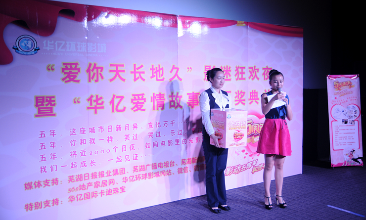 五月初,華億環(huán)球影城結(jié)合五周年店慶,推出“華億愛情故事”有獎?wù)骷顒樱瑢⒃u選出五個“最動人愛情故事”獎,可獲得價值4580元的鉆戒和橫店影視基地二日游。經(jīng)過近一個月的征集,共吸引了近百對情侶報名參賽。經(jīng)過層層評選,數(shù)十對情侶影迷的愛情故事入圍,通過媒體展示,投票推選,最終,五對影迷情侶獲得鉆石旅游大獎,十余組情侶獲得華億環(huán)球影城鉆石影迷卡。