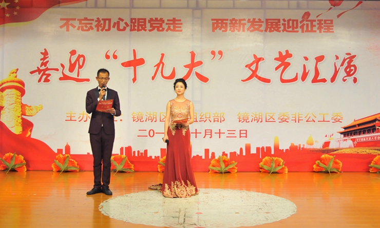 10月13日下午,鏡湖區(qū)“不忘初心跟黨走 兩新發(fā)展迎征程”——喜迎'十九大'文藝匯演在區(qū)政府大禮堂舉行。華億舞蹈團應(yīng)邀參加演出,表演的開場舞《美麗中國走起來》引起觀眾陣陣喝彩。