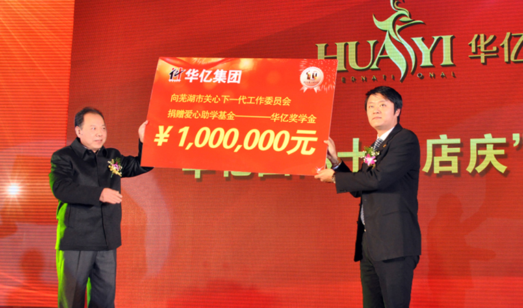 華億獎學(xué)金,全稱為"蕪湖市愛心助學(xué)基金華億獎學(xué)金",由華億集團(tuán)向蕪湖市關(guān)心下一代工作委員會捐資200萬元設(shè)立。市關(guān)工委將以此筆捐資為"資金池",通過擴(kuò)大捐資規(guī)模、穩(wěn)健經(jīng)營管理,不斷擴(kuò)大“華億獎學(xué)金的規(guī)模和效應(yīng),充分發(fā)揮“華億獎學(xué)金”的社會功能,將華億人的愛心不斷放大并傳遞下去。獎學(xué)金設(shè)立以來,每年暑期開學(xué)前向優(yōu)秀學(xué)子代表發(fā)放,受到社會廣泛關(guān)注。