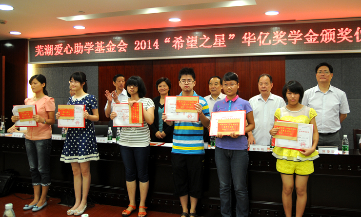 • 8月20日上午,蕪湖市愛心助學(xué)基金會舉行2015年度“希望之星”華億獎學(xué)金頒獎儀式。18位在今年中、高考中取得優(yōu)異成績的學(xué)生獲獎。
