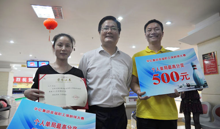 在簡短的開幕式之后,比賽迅速展開并高潮迭起。各參賽選手充分發揮水平,不時打出全中的好球。經過近3個小時候的激烈比賽,偉晨公司獲得團體第一名,集團機關、華億國際一隊獲得團體第二名,華億國際二隊、華億置業、華億超市獲得團體三名。偉晨公司選手朱浩宇、華億國際一隊選手張立琴分別獲得男女個人單局最高分獎。項義水董事長則打出了個人總分第一的好成績。