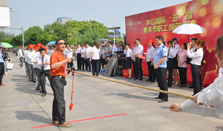 2012年5月4日,為慶祝“五四”青年節,華億國際在步行街華億廣場A座門前廣場舉辦了“五?四青年節職工拔河比賽”。
